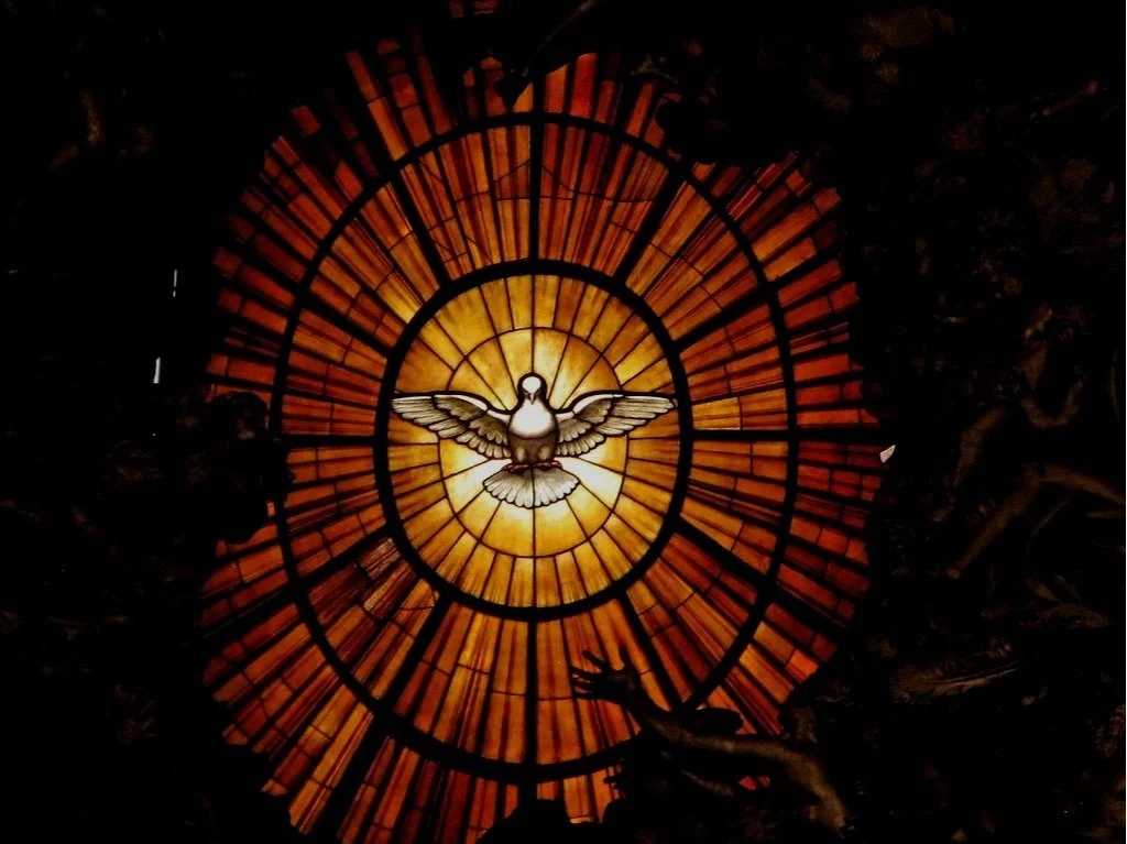 Stained glass image of the Holy Spirit descending in the form of a dove, at the center of Bernini's Chair of St Peter (c.1665). Photo credit: Lawrence OP | Flickr, CC-BY-NC2.0.